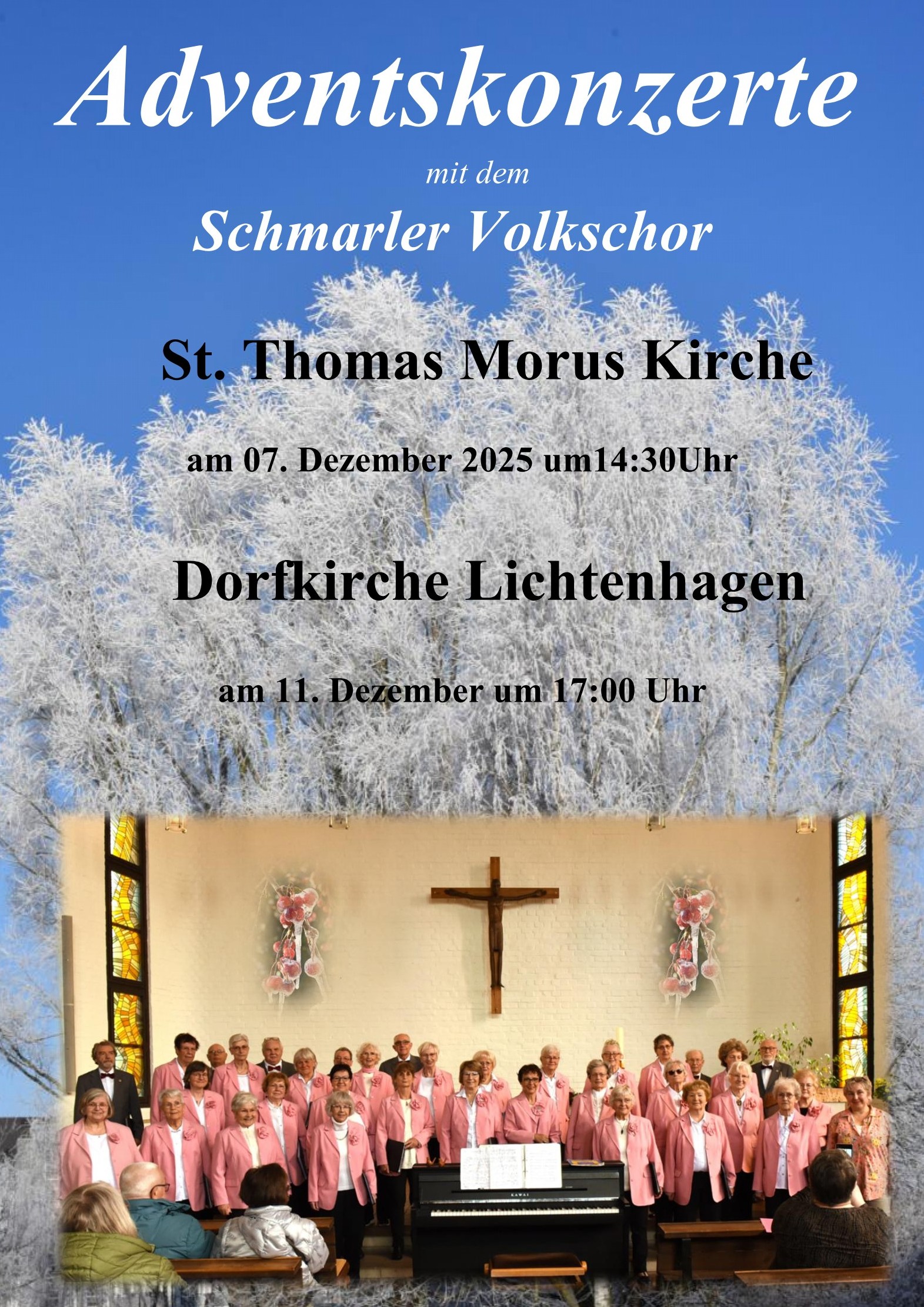 Zum Abschluss unseres Chorjahres 2025 laden wir Sie alle recht herzlich zu unseren Konzerten ein, um uns gemeinsam auf die besinnlichen Stunden der Weihnachtszeit einzustimmen.